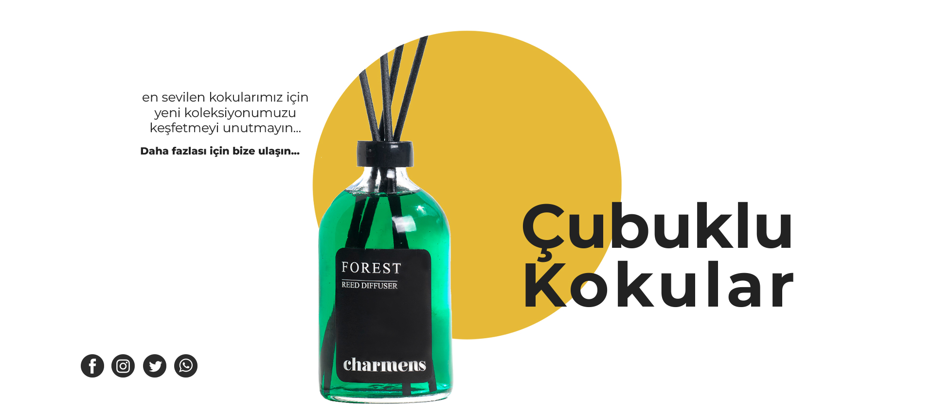 Ev kokusu koleksiyonumuz sizi evdeki mutluluğa küçük bir adım daha yaklaştırıyor. Mumlarımız ve aromatik difüzörlerimizden gelen yemyeşil botanik ve uçucu yağların notaları ile yaşan alanınızı geliştirin.